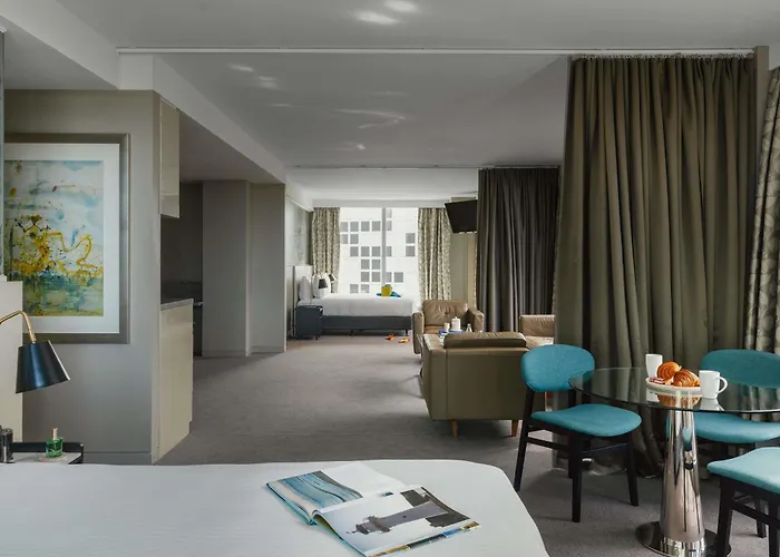 Nur 450 Meter zu Fuß vom Fluss Yarra River entfernt, bietet das Hotel Quay West Suites Melbourne City 100 Zimmer. Das Hotel in einem Unterhaltungs- Bezirk verfügt über ein Hallenbad und einen privaten Parkplatz vor Ort.